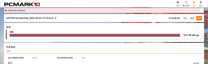 在续航方面,Surface Laptop, 13英寸的表现十分出色,经过PCMARK视频播放测试(亮度60,音量15,开启蓝牙与WLAN),经过测试,可以连续播放16小时38分钟的高清视频,在日常办公时,可以确保一整天的续航能力。