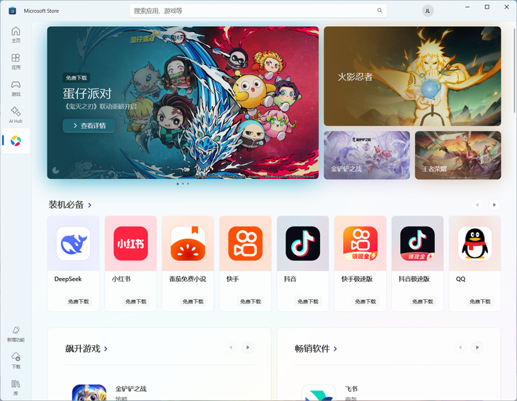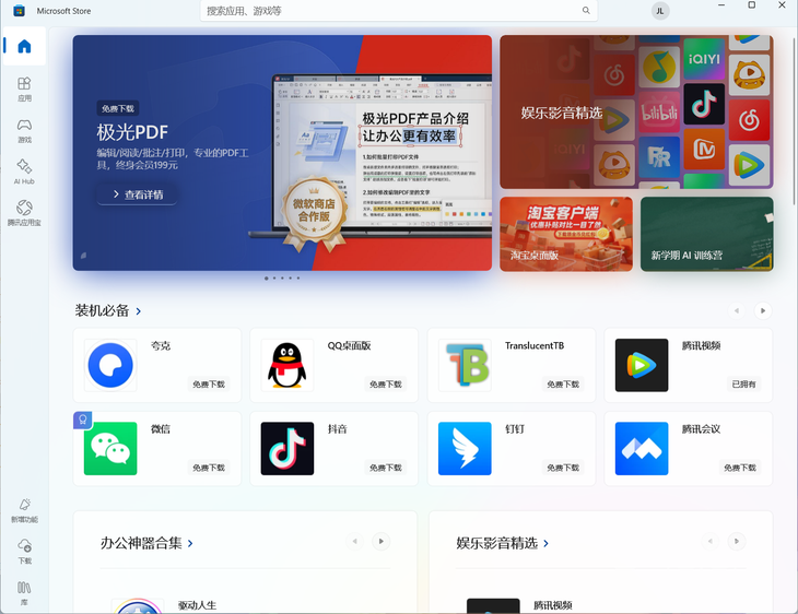 在Microsoft Store中还设立了应用宝专区,除了常用软件外,还可以提供一些游戏进行下载。