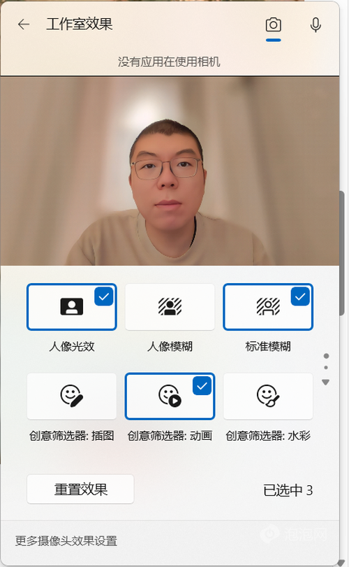 Surface Laptop, 13英寸也支持摄像头的【工作室效果】,可以在调用摄像头视频中进行实时的模糊背景、改变画面风格等功能。