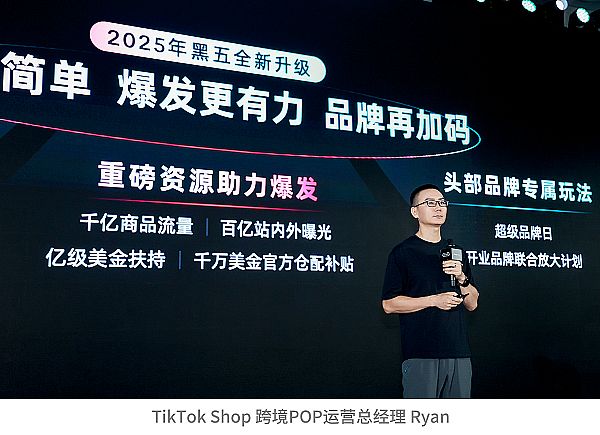 TikTok Shop跨境POP运营总经理Ryan在会上强调:今年黑五,平台将给予商家全年最重磅资源,让商家双倍发力,轻松迎来多重增长!