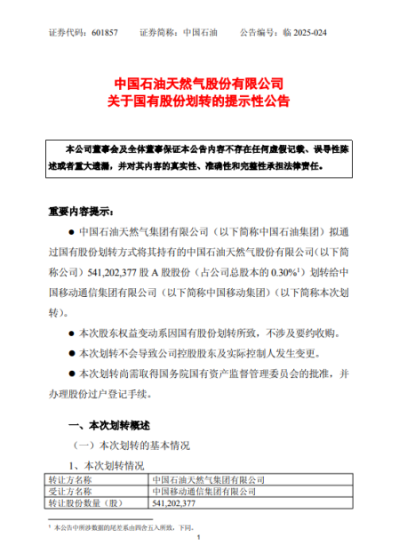 9月2日晚间,中国石油集团宣布拟将持有的5.41亿股中国石油A股股份(占总股本0.3%)无偿划转给中国移动集团,以深化双方战略合作。这一大动作再次将中国石油与中国移动推上了热点话题,其实关于这两大国企集团之间的关联,早在去年就有一些信号露出。
