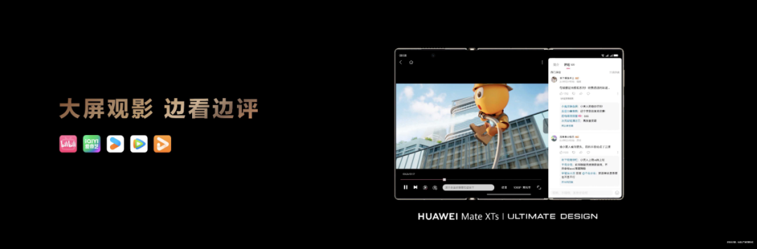 例如在影音娱乐的场景中,B站、爱奇艺、腾讯视频、优酷等应用在三折叠10.2英寸大屏上实现了最优布局,视频封面更大,一屏承载更多内容,“边看边评”的互动体验也更加顺畅。无论追剧还是刷弹幕,用户都能在沉浸观感与便捷互动之间找到平衡。