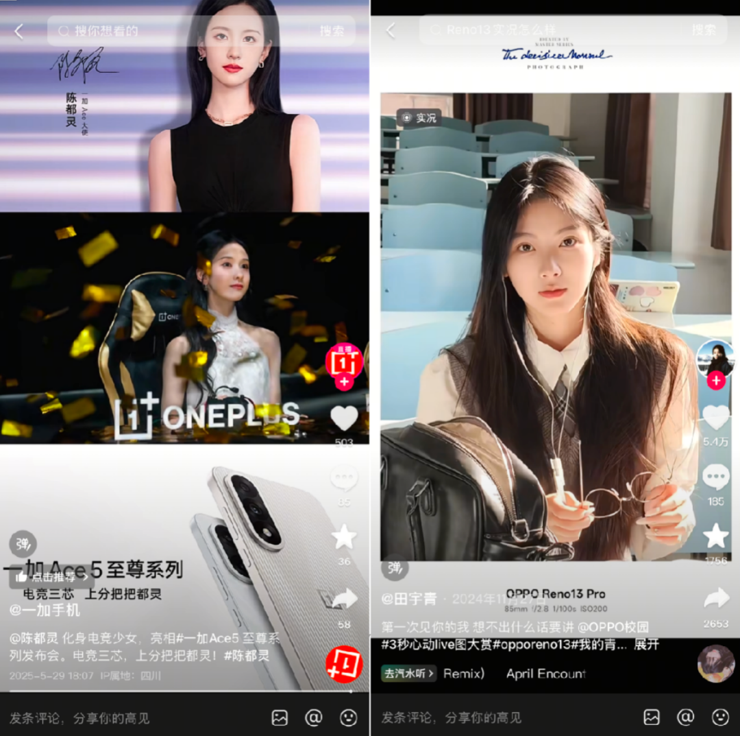 除此以外,AI在抖音生态中所蕴含的潜力正不断拓展延伸。一加通过与抖音游戏IP、PEL职业赛事和明星主播合作,把“游戏”这一场景心智深度植入用户心中,带动游戏赛事直播间收获6.5亿总曝光,搜索相关心智提升4倍,最终实现“游戏”场景心智跃升至行业第一。OPPO Reno13则携手抖音“校园live计划”,通过15所高校联动营造音乐节氛围,活动全网曝光超5亿次,话题播放量达263亿次,校园核心人群渗透率突破50%。