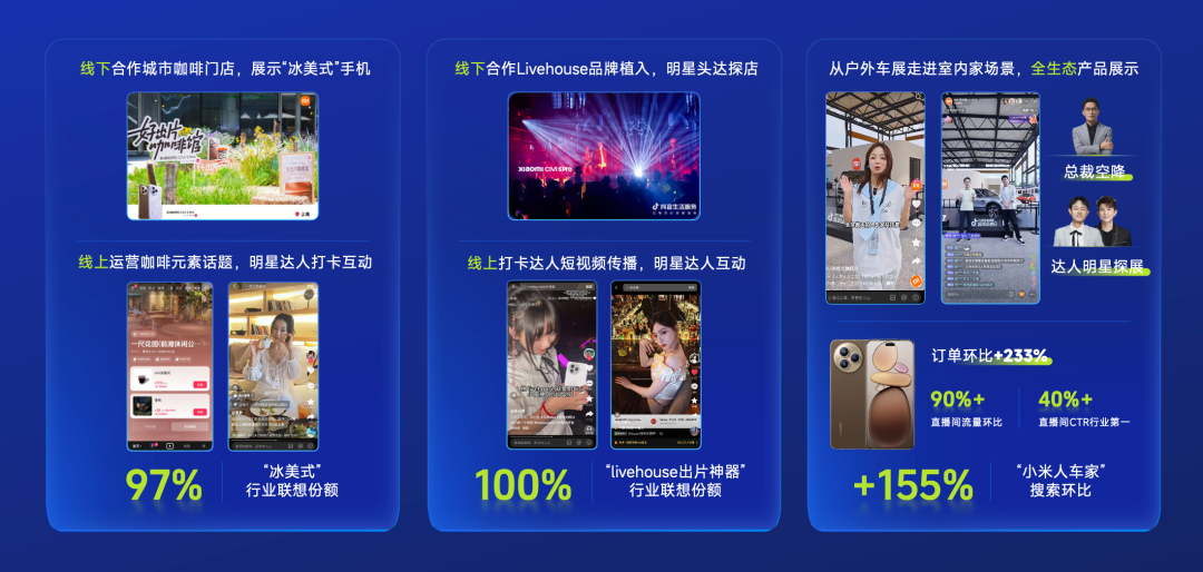 比如,小米在新品上市中,尝试用“三层心智”打法立体击穿用户认知:在商品心智上,通过“冰美式”外观设计与咖啡文化元素绑定,制造出易于记忆的卖点;在场景心智上,结合夜拍与娱乐消费场景,线下合作livehouse品牌植入,线上则由打卡达人进行短视频传播与互动,把“livehouse出片神器”的标签深植用户心中,行业联想份额达到100%;在品牌心智上,则通过跨界咖啡店、生态场景展和达人矩阵,营造出“小米年轻人专属”的身份共鸣。