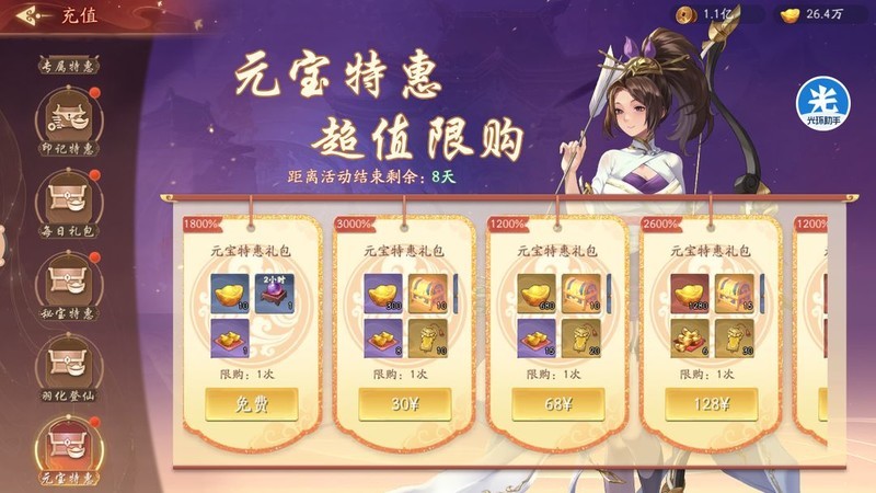元宝特惠限时活动,仅在风云际会期间开放,非每日可用。