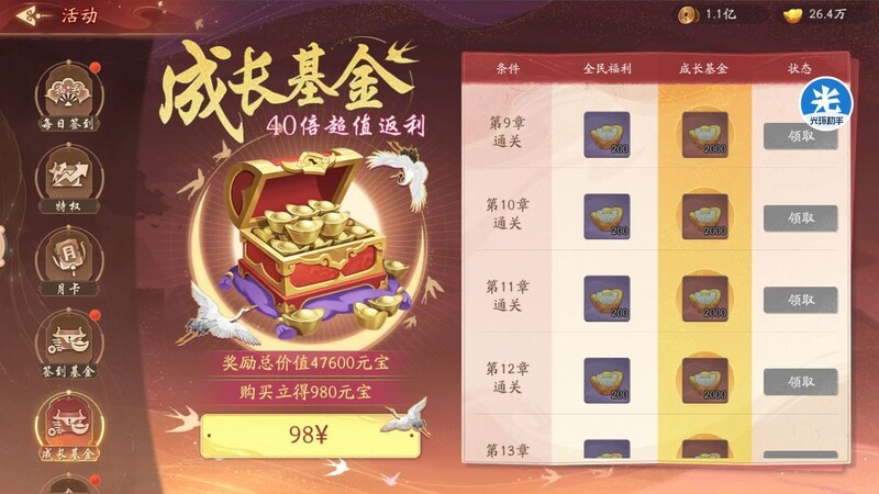 该方案性价比较高,购买后不会吃亏,分为98元的超值基金和198元的豪华基金两种类型,其中必须先开启超值基金,才可开启豪华基金。