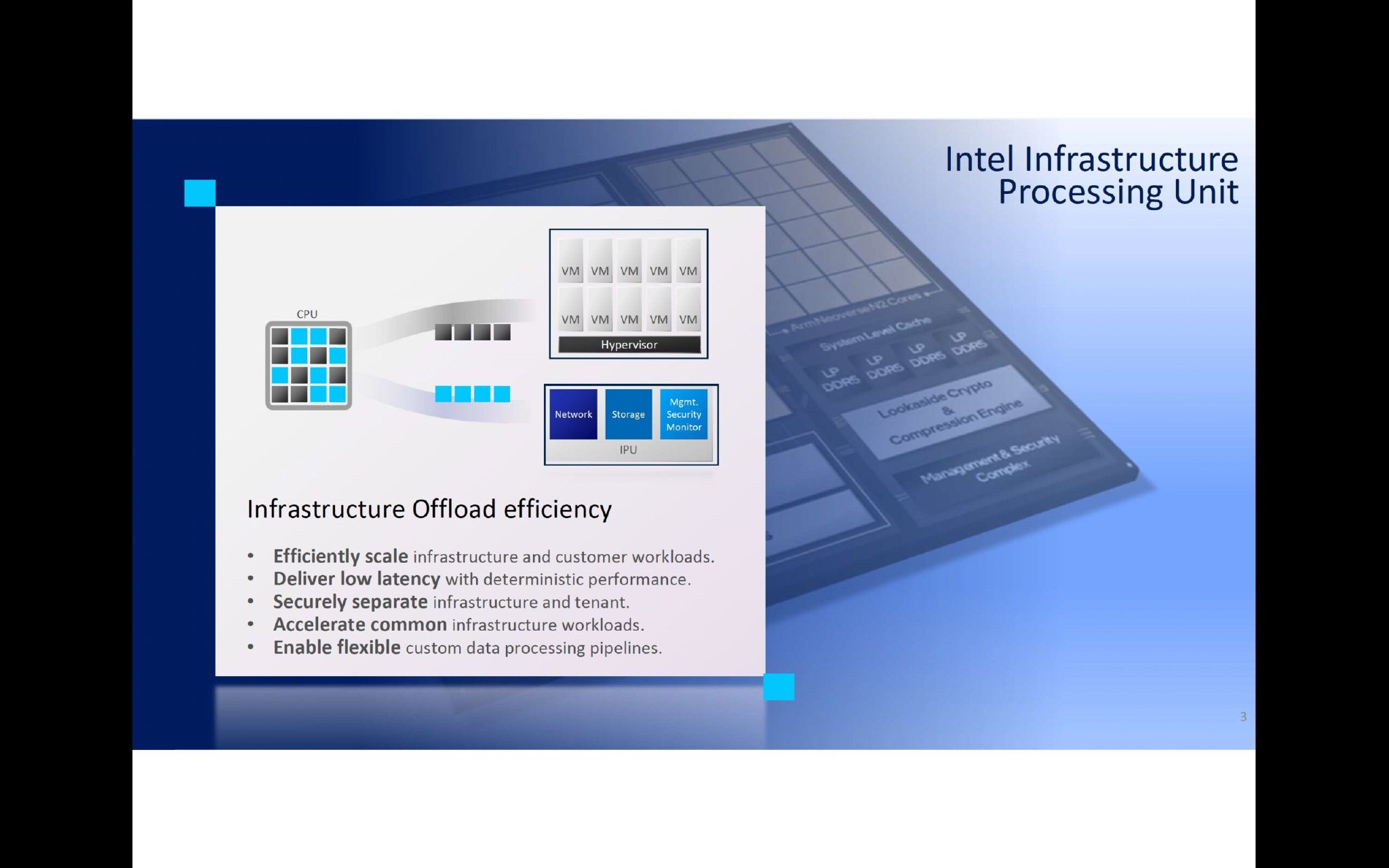 英特尔IPU E2200 从 CPU 卸载基础设施服务,使主机 CPU 能够专注于客户工作负载,从而提高效率和安全性。