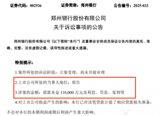 近期,郑州银行发布了一则诉讼事项公告,披露了旗下一支行对三家企业及其相关负责人的诉讼要求,其中涉及金额高达11亿元。具体情况如何,运营商财经网将做以下梳理。