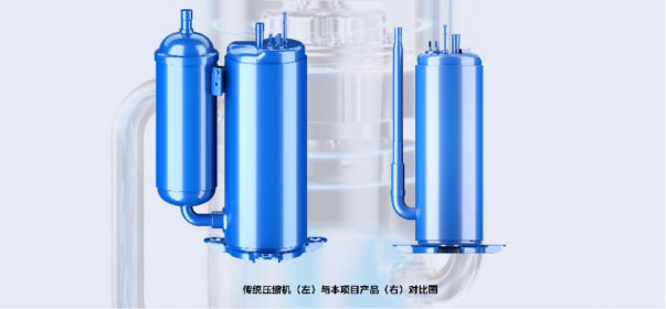 以美芝集成式转子压缩机关键技术研究及产业化项目为例。当下随着居住空间高效利用需求增长,空调外机小型化是必然趋势,而压缩机组件小型化起决定性作用。常规缩小本体外径做法受限,难以满足需求。由美芝牵头完成的集成式转子压缩机关键技术研究及产业化项目摒弃传统外置储液器形式,实现极致集成小型化压缩机及规模应用。