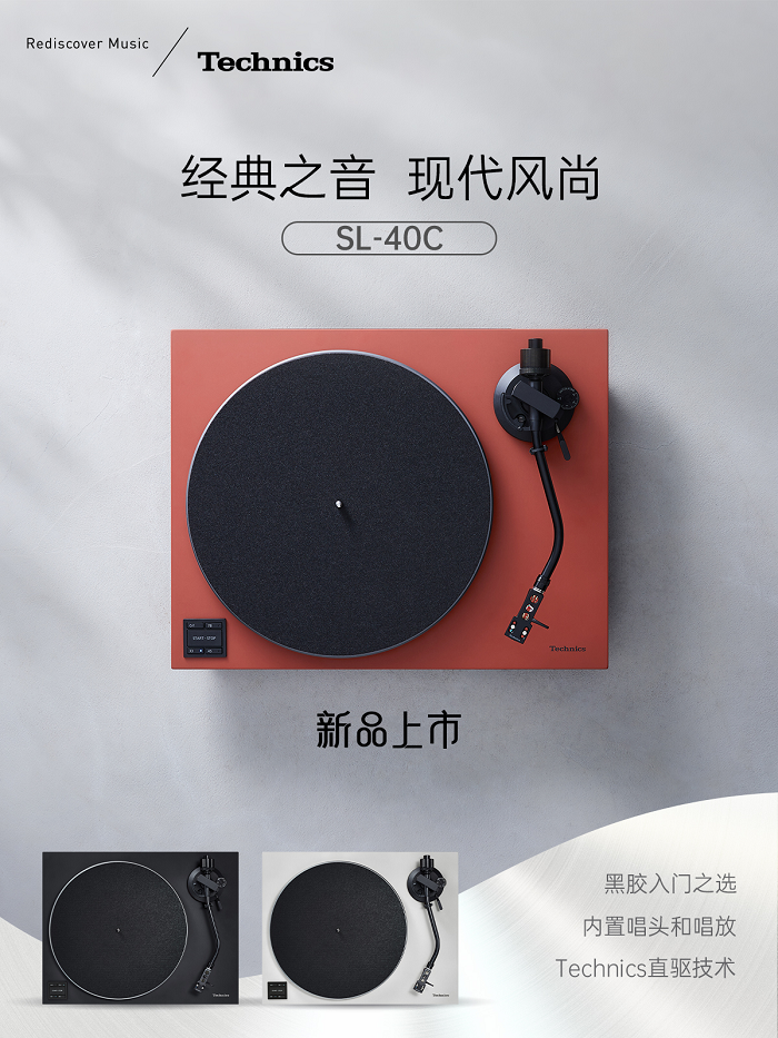 Technics 已成为 DJ 和HIFI市场高端品质唱盘的代名词。为不断满足客户需求,Technics 决定突破传统唱盘的设计,将经典特性——精密可靠的无芯直驱电机与全新的视觉外观相结合,以吸引更多的黑胶音乐爱好者。Technics 将通过SL-40C/40CBT这一产品,进一步满足那些刚开始黑胶唱片之旅、同时希望获得能够提供HIFI音质的音乐爱好者。