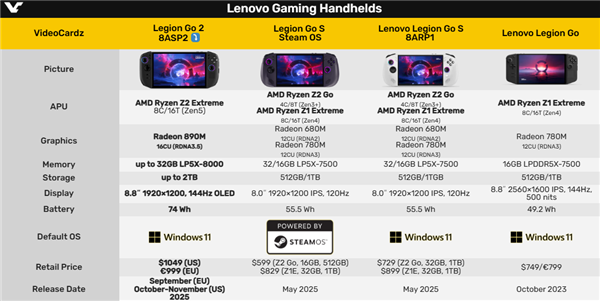 Legion Go 2配备了AMD专为掌机打造的旗舰处理器锐龙Z2 Extreme,8核心16线程,包括3个Zen5核心、5个Zen5c核心、8MB二级缓存、16MB三级缓存,主频最高5GHz。