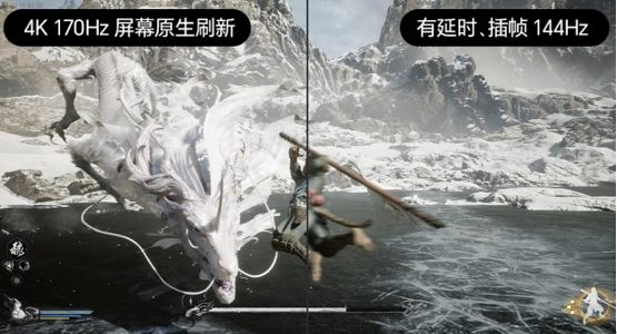 对游戏玩家而言,画质的高刷新率非常重要。海信E8Q Pro支持原生4K 170Hz高刷,动态刷新率达330Hz,配合极光瞬影引擎,实现背光与响应时间的完美同步。在实际游戏体验中,比如玩《黑神话:悟空》时,面对亢金龙关卡密集的落雷攻击,超低延迟和无拖影特性让玩家能精准闪避。即便亢金龙快速移动或腾空,画面依然流畅稳定,不会出现撕裂,还能清晰展现龙鳞等细节,带来沉浸式游戏体验。