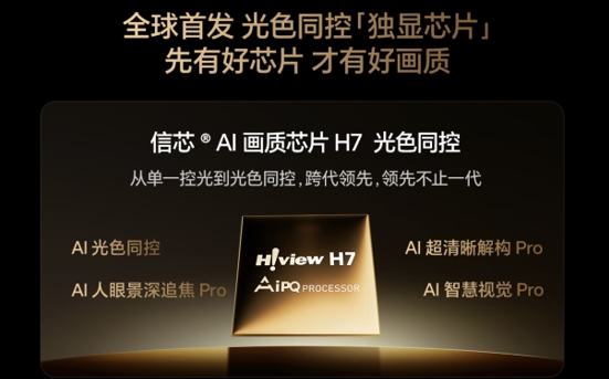 不过,硬参数只是"基本功",真正让海信E8Q Pro在画质上与其他电视拉开差距的,是其搭载的自研信芯AI画质芯片H7。这颗芯片突破了传统单一控光的局限,首次实现了AI光色同控:在处理图像时,先分别提取光色信息,再通过26bits灰阶控制和15680点位高精度色彩管理,逐像素校准亮度与色彩,最终输出明暗层次分明、色彩自然真实的画面。在呈现"大雪红袄"等高对比度场景时,雪地高亮处不会刺眼,岩石暗部纹理清晰可见,远处山峦的青灰色渐变自然流畅,毫无断层感。