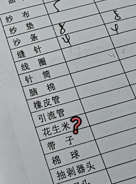 快科技9月5日消息,今日,有网友发了一张手术时需要用到的器材清单,让人没想到的是,这里面竟然有花生米。