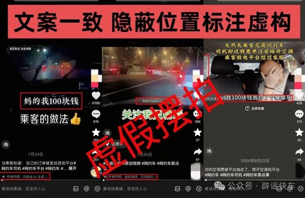 官方表示,经平台严格核查,该系列内容均为个别账号为博取流量、吸引眼球的虚假摆拍。