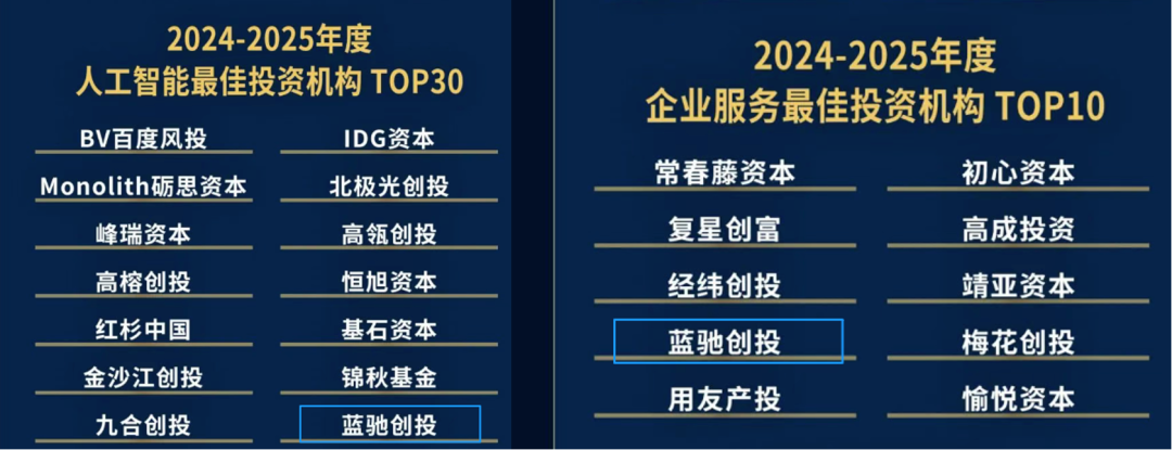 • 2024-2025年度企业服务最佳投资机构TOP10