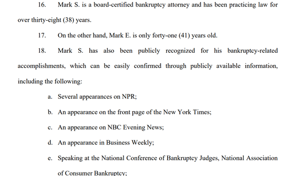 他在自己的网站上写道:“我对马克·扎克伯格没有恶意。我祝他一切顺利,但让我告诉你:我将主导‘马克·扎克伯格 破产’这一搜索。如果他真的陷入财务困境,又恰好在印第安纳州,我将很乐意以我们同名之谊为荣来代理他的案件。”