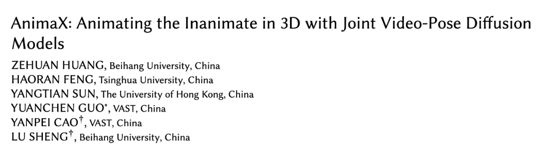论文题目:AnimaX: Animating the Inanimate in 3D with Joint Video-Pose Diffusion Models