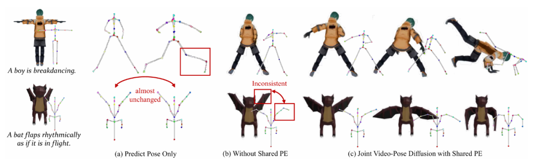 完整的 AnimaX 模型,即联合视频-姿态生成并共享位置编码。