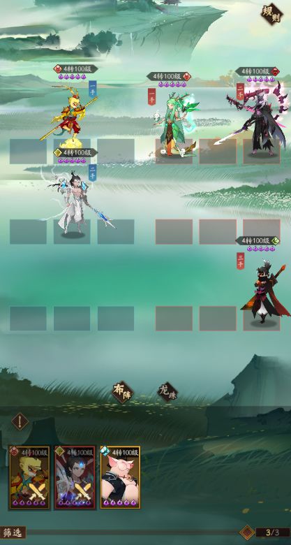 出战角色:孙悟空、飞卫、杨戬三位伙伴。