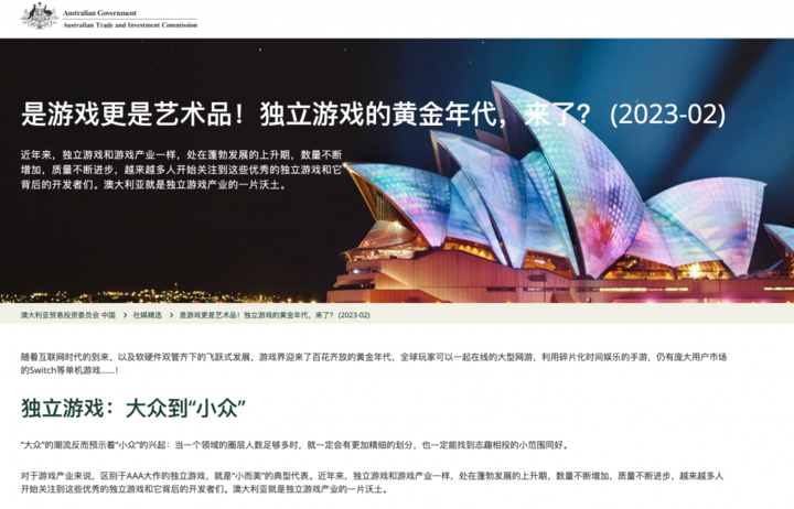 在《空洞骑士》之后,大量优质澳洲本土独立游戏都来到了聚光灯下,例如《捣蛋鹅》《咩咩启示录》《遗忘之城》。澳洲政府官网甚至专门为澳洲独立游戏设立了页面。