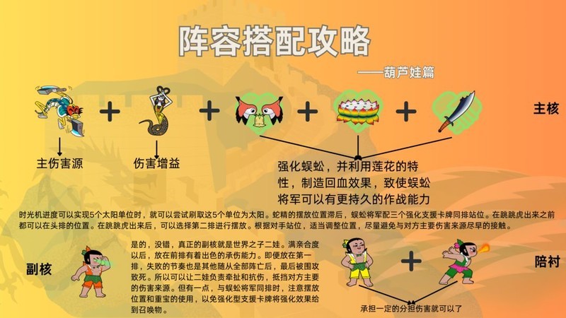 时光旅行社新赛季迎来全新世界之子——葫芦娃。本文为葫芦娃丨阵容搭配篇(上),将针对不同赛季获取二娃的情况,详解长河、讨伐魔物、原初试炼三大玩法的核心卡组与搭配思路,助你在赛季中后期稳占先机。