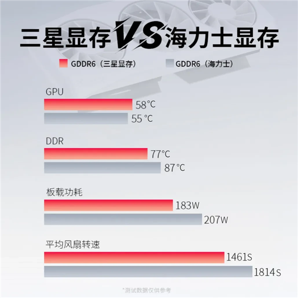 整卡功耗方面,三星版为183W,SK海力士版则有207W,差了多达24W。