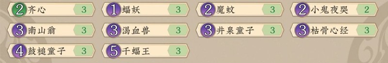 瑶光核桃、疯魔三笑、叠翠、碾压:中后期爆发型卡牌,但因中后期枯骨心经费用虽高,却兼具群体伤害与增攻效果强势,导致没有卡位。同时南山翁也具备高配连击能力。