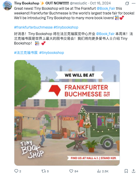 上线后,这款游戏在首周就实现了约20万的销量——就一款读书题材的独立游戏来说,这个数字已经颇为可观了。目前,它在Steam上收获了将近2500条评论,96%的好评率。而前段时间,《小小书店》还在科隆游戏展上获得了“最佳影响力游戏”(Games for Impact)的奖项。