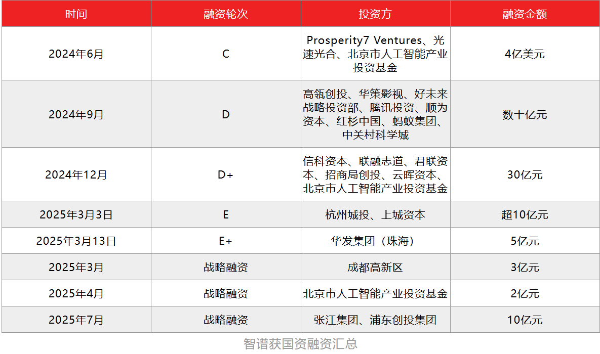 2025年3月单月,其接连斩获杭州、成都、珠海三地融资;在提交上市辅导备案后的两个半月,又获浦东创投集团与张江集团联合注资的10亿元战略融资。至此,智谱已集齐北京、杭州、成都、珠海、上海五地国资背景,“国家队” 属性愈发突出。