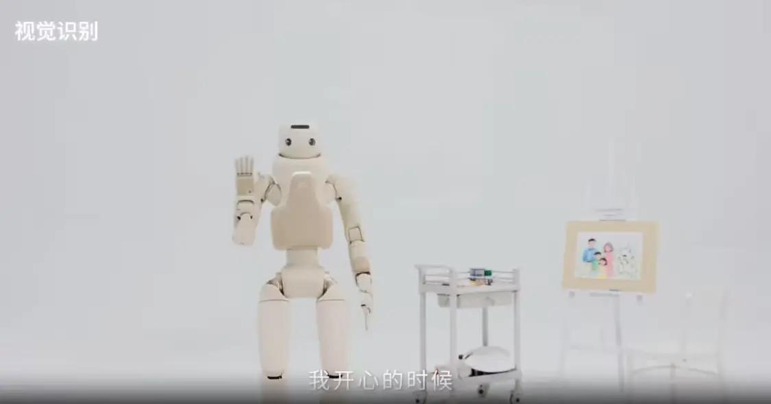 此外,GR-3 的交互系统采用融合了硬编程与大模型推理引擎的“双路径响应机制”,可以根据不同的交互情景,定向触发“快思考”与“慢思考”模式,模拟人类的条件反射与交流思考逻辑,生成更自然且适配场景的复合应答。此外,GR-3 的交互系统还嵌入了微表情反馈:新增的神态交互与眼球反射运动通过特效瞳膜设计,具象情绪传达。