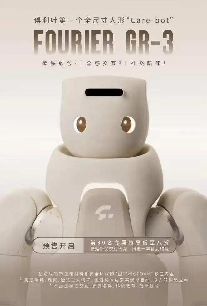 9 月 8 日消息,今日,傅利叶首款搭载全感交互系统的“Carebot”人形机器人 GR-3,正式开启预售,价格信息暂未公布,用户可通过官网、微信等渠道购买。