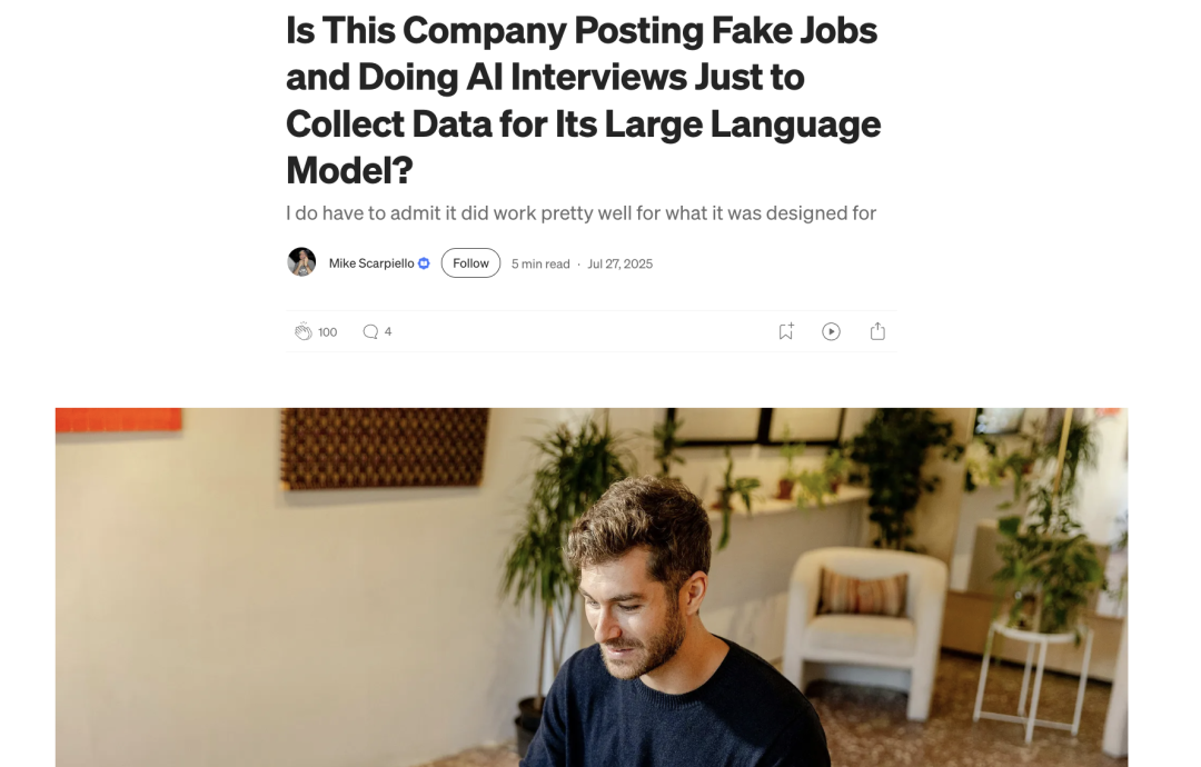 Reddit 上有人讽刺道:「数据已收集,候选人被拒绝。」一名自称沃尔玛数据科学家的用户在 LinkedIn 上直言:「这是个骗局。」还有人干脆在 Medium 上写长文,指责「一些公司正在利用求职者的绝望——不是为了招人,而是为了收集机器学习模型的数据。」
