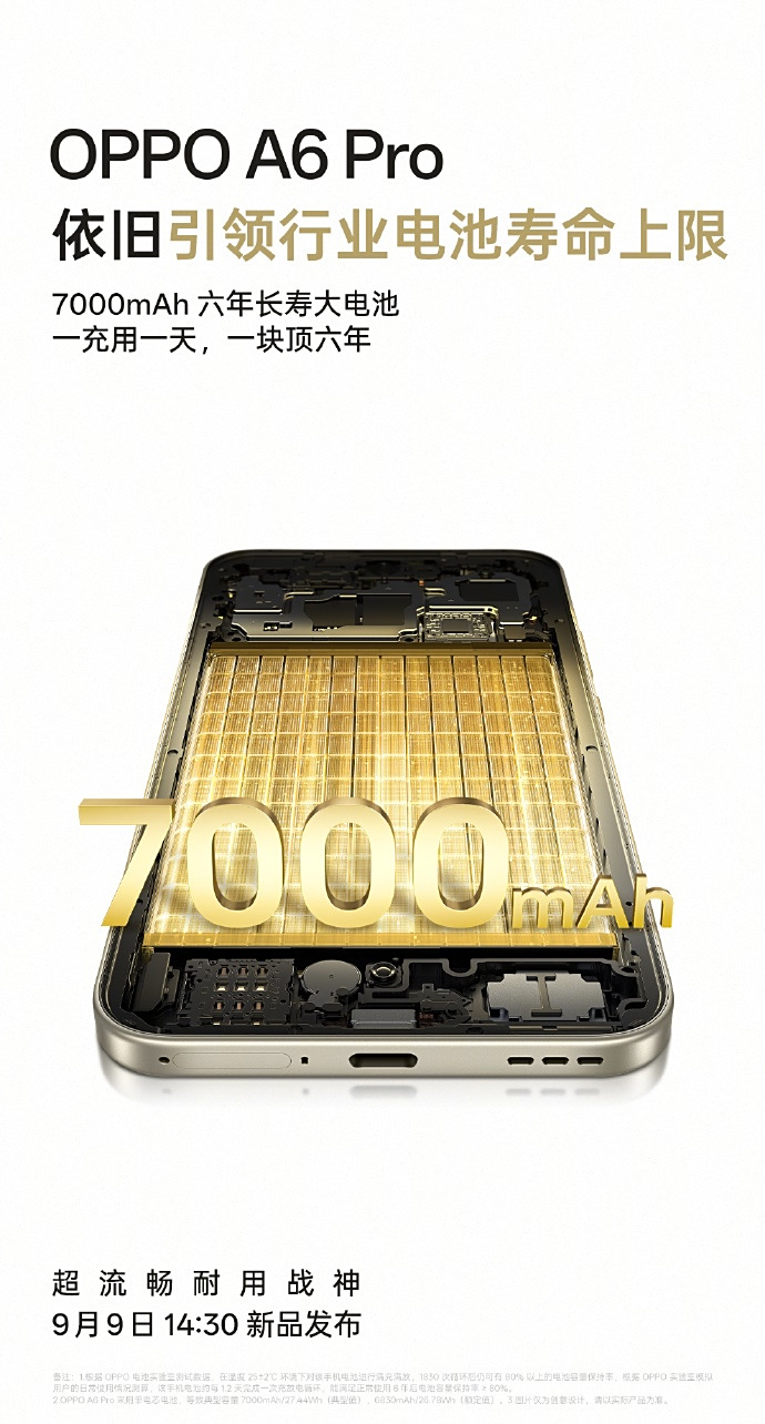 【天极网手机频道】天极网最新消息,OPPO 正在持续为即将发布的 OPPO A6 Pro 造势,这款被官方定义为“耐用新一代、强悍更流畅”的中端 5G 新机,将于 9 月 9 日 14:30 正式亮相。通过多轮预热信息可以看出,A6 Pro 在同档位机型中强调了“三大核心竞争力”:满级防护、长效续航以及久用流畅体验。