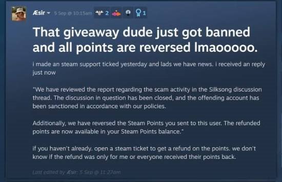 这一骗局很快被识破。据消息人士aEsir透露,涉事账号因无法兑现承诺已被Steam官方封禁。但也有玩家反映,至今仍未追回损失,并指出Steam以往很少为此类非官方交易提供退款支持。