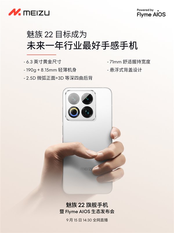 作为年度旗舰,魅族22定价可能会超过3000元,官方称这是“未来一年内最好手感手机”。