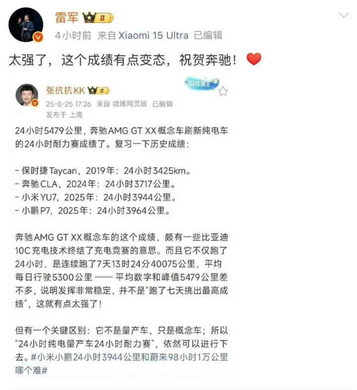 这套系统的稳定性也早已被验证过——,奔驰 AMG GT XX 纯电概念车在 24 小时耐力测试中,实现了 5479 公里的行驶里程新纪录,比原有纪录提升了 1518km,这一数据在纯电车型领域堪称 「里程碑式突破」。