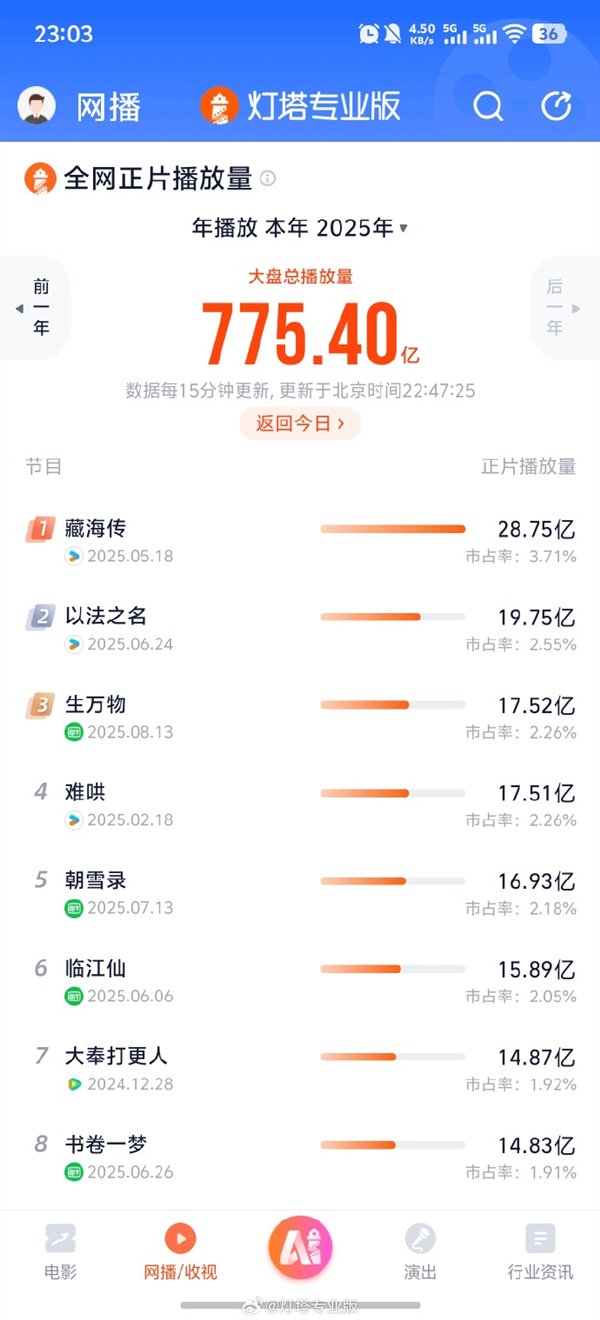 快科技9月9日消息,据灯塔专业版数据显示,由杨幂、欧豪领衔主演的《生万物》全网正片播放量已突破17.52亿,成功跻身2025年剧集播放量前三甲。