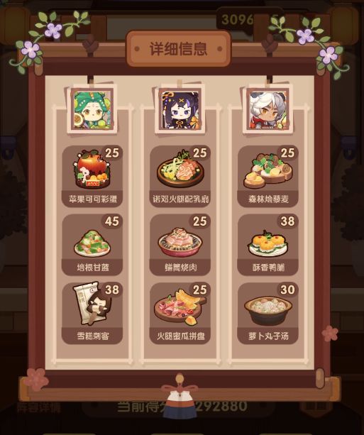 分数不足的可以搭配后厨菜品,若无后厨菜或无法替换,可将蒙晗换成句茫或培养过的唐三三,面茶搭配茴香海鲜啵啵,再选五火蒸的任意菜谱,轻松应对;想吃年货就年货,不想吃蒸汽海鲜的随便搭配即可。