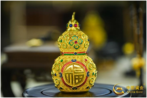 花丝葫芦,谐音“福禄”,花丝与珐琅搭配,寓意多子多福,繁茂吉祥,福寿安康。