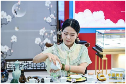 品鉴环节在茶香雅韵中举行,茶艺师与中国黄金产品推荐官共同引领来宾体验“金与茶”的文化对话,多件重磅臻品惊艳亮相。