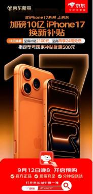 【天极网手机频道】北京时间9月10日凌晨,Apple如期举办秋季新品发布会,重磅推出iPhone 17系列、新款Apple Watch及AirPods等多款新品。备受期待的iPhone 17系列将于9月12日20点开启预购,9月19日正式开售。目前,Apple产品京东自营旗舰店已同步开启预约通道,并加码10亿iPhone 17换新补贴,帮助用户以更优价格入手正品好货,只需打开京东搜索“苹果新品福利”即可。通过京东购买iPhone 17系列新品的果粉,可享受以旧换新至高补贴2100元、指定型号国补优惠500元、至高24期免息等权益,更有下单iCloud、AppleCare享85折、App Store充值卡至高优惠9折等丰富权益,让换新更轻松、更划算!此外来京东购Apple新品,可享分钟级送达。对于想快速入手iPhone 17系列新品的果粉,可以在全国Apple授权的近万家专营门店,通过京东秒送购买Apple新品,先人一步到手新机。