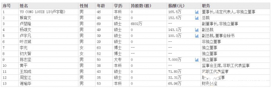 其堂兄弟,担任公司副总裁兼董事会秘书的卢宇凡是英国波恩茅斯大学市场营销专业硕士研究生毕业。卢宇聪的姐夫,在公司现任副总裁的杨颂文也是海外高校硕士研究生毕业,并参加多个国内名校的高级研修班。此外,从公司现任的高管团队构成来看,硕士学历及以上的占比近七成。