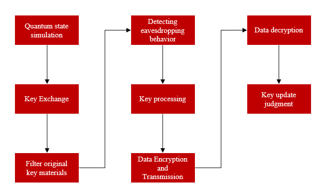 量子态模拟模块:QKD系统利用复杂的算法在计算机系统中模拟量子态的生成过程,例如通过随机数生成器结合特定的数学模型来模拟光子的偏振态或其他量子特性的量子态表示。这些模拟的量子态将作为后续密钥交换的基础信息载体。