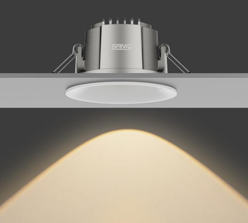 光效革命是星曜系列的最大亮点。搭载了三思自研的“陶瓷芯”,其LED光效达到普通筒灯的 1.5 倍。这意味着只需 2-3 盏就能原本5盏才能实现的均匀照明,单灯即可打造边缘清晰的 “纯净小山丘” 光斑,既减少安装数量又降低能耗。