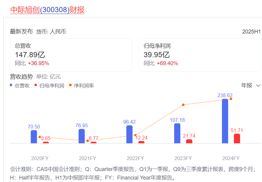 2025年上半年,公司营收147.89亿元,同比增长37%;归母净利润42.42亿元,同比增长69.4%,毛利率和净利率分别提升至39.33%和28.69%,创历史最佳水平。