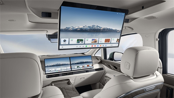 新车提供360全景影像、透明底盘、64色氛围灯,二排提供17.3英寸后排娱乐屏以及容积为12.5L的智能冷暖冰箱,还配备23扬声器音响系统,最大功率2440W,采用7.1.4扬声器布局。