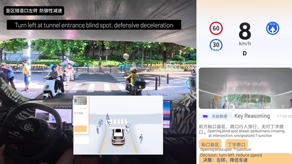 “VLA模型融合了视觉、语言和行动三大能力,其核心优势是实现了高度的可解释性,”元戎启行CEO周光解释道,“它能够像人类一样串联信息、分析因果,从而理解‘前方有公交车遮挡,因此盲区内可能有行人穿行’这类复杂场景,并做出提前减速的预防性决策。其决策路径是透明、可追溯、可求导的,彻底摆脱了传统模型的‘黑盒’难题。”