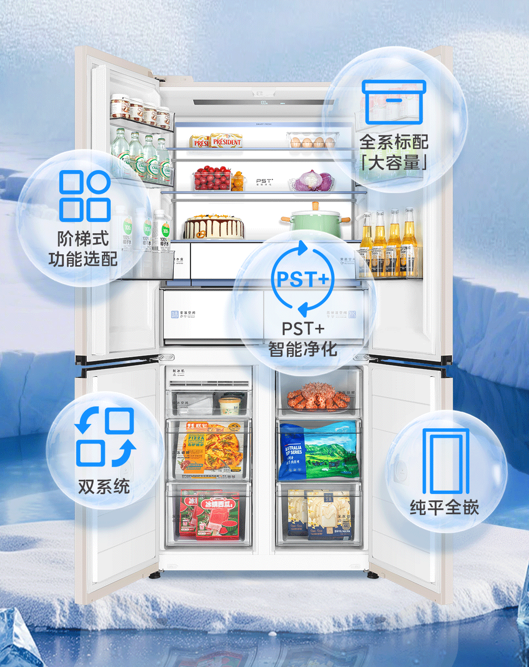 结合这些线索不难推测,美的熊墩墩冰箱很可能在 “大容量” 与 “健康储鲜” 两大核心维度带来突破性升级。当下消费者对冰箱的需求越来越明确:既想要足够能 “装” 的大容积,轻松收纳全家食材;又期待强大的净化能力,守护每一份入口的新鲜。但面对市场上五花八门的产品,参数看得眼花缭乱,选来选去总难找到完美匹配的那一款——而熊墩墩冰箱的出现,或许正是为了精准击中这个 “选择难题”。