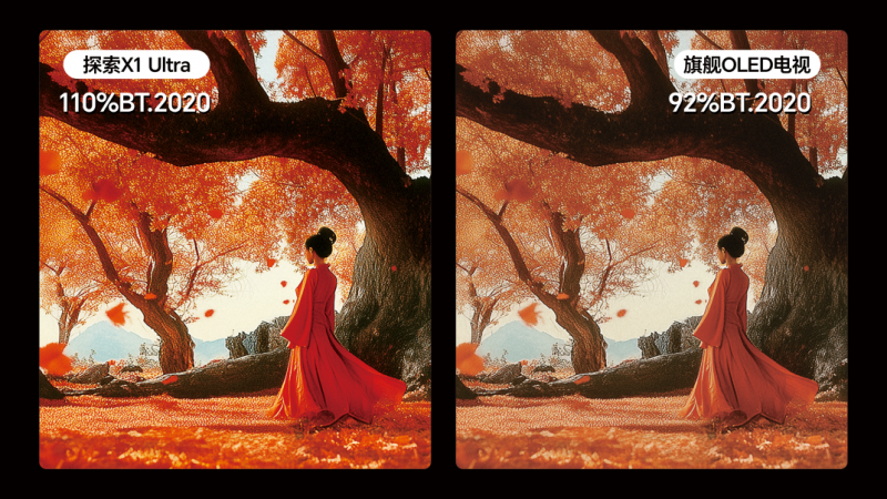 探索X1 Ultra拥有行业最高110% BT.2020电影工业级色域,色准E<0.6,这一能力不仅满足高端家用户的观影需求,更可精准适配设计师在色彩敏感型项目中的专业诉求,确保设计意图得到完美呈现。